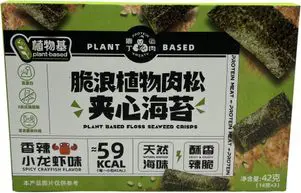 脆浪植物肉松夹心海苔:据称,它们含有高蛋白和膳食纤维,每小袋不含反式脂肪酸,热量为59千卡。